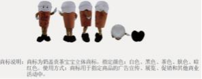 (商标说明: 商标为奶盖贡茶宝宝三维标志商标 。 指定颜色: 白 色 、 黑色 、 茶色、 肤色 、 暗红色 。使用方式: 商标用于指定商品的广告宣传 、展览 、促销和其他商业活 动中)