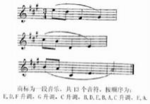 (该商标图样中文字说明为: 商标为一段音乐 , 共 13 个音符 , 按顺序为: E, D, F升调 , C升调 , C升调 , B, D, E, B, A, C升调 , E, A)